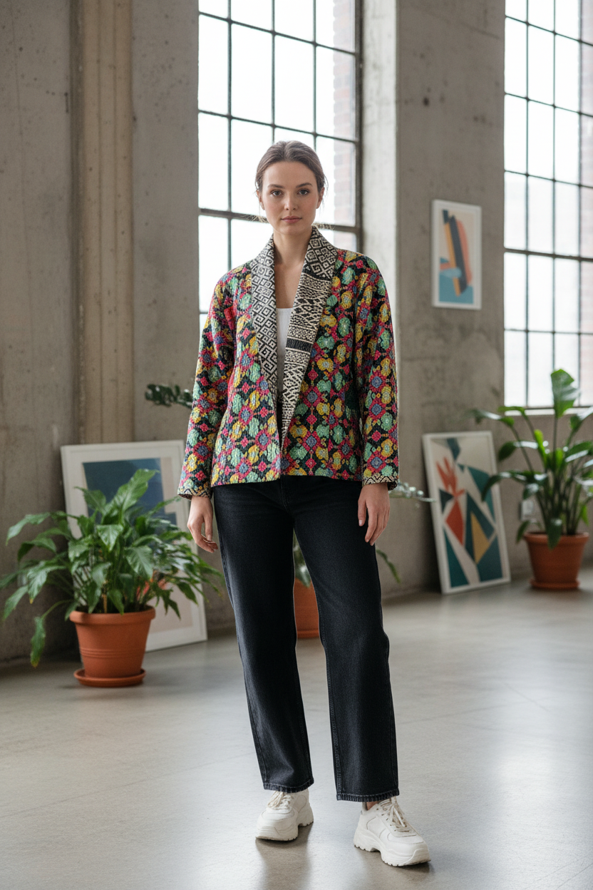 Kantha Short Jacket (Free Size)