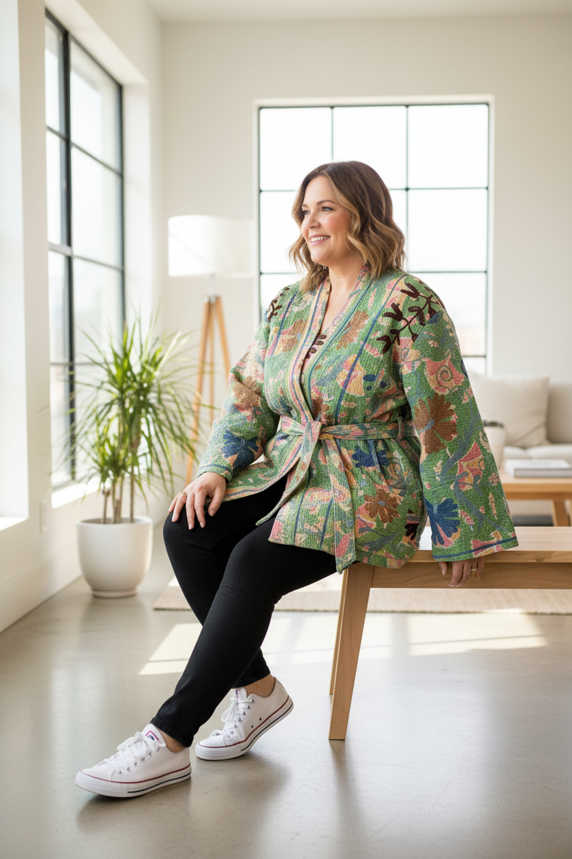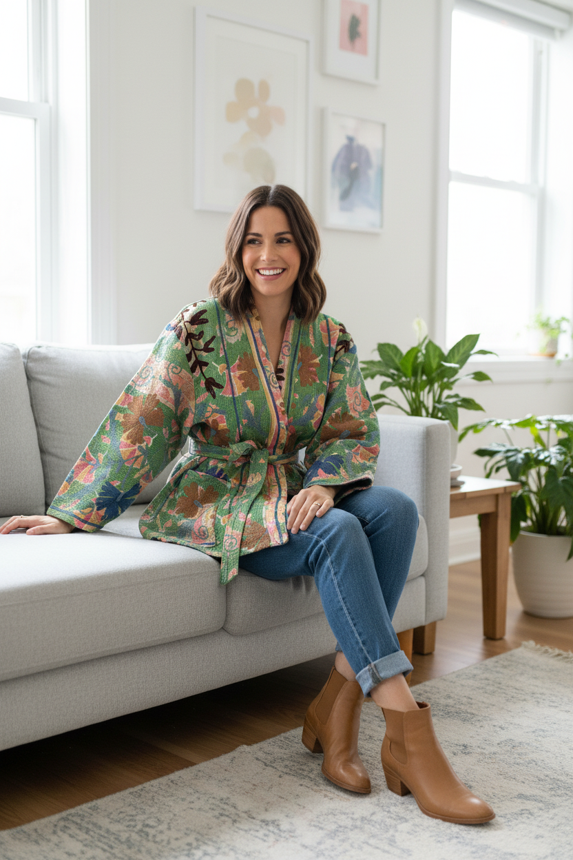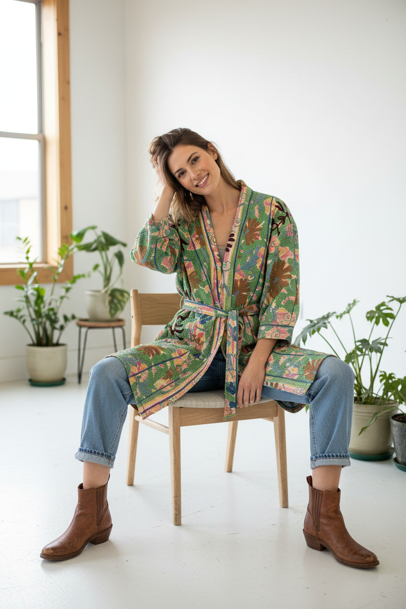 🌼 Reversible Kantha Suzani Coat– One-of-a-Kind Boho Kimono Coat 🌸