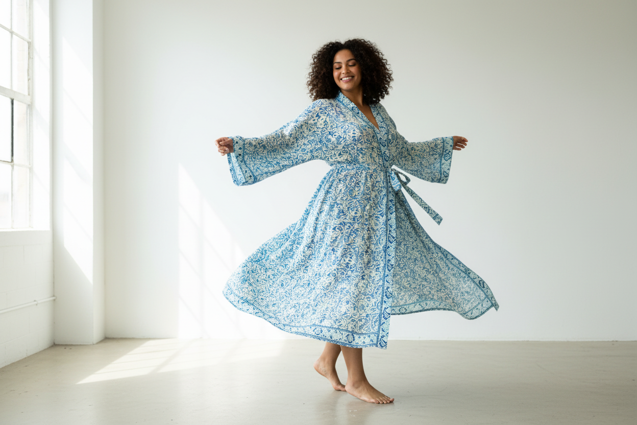 This beautiful Kimono Robe in PLUS SIZE is made from high-quality New Silk sari’s Handpicked by us.