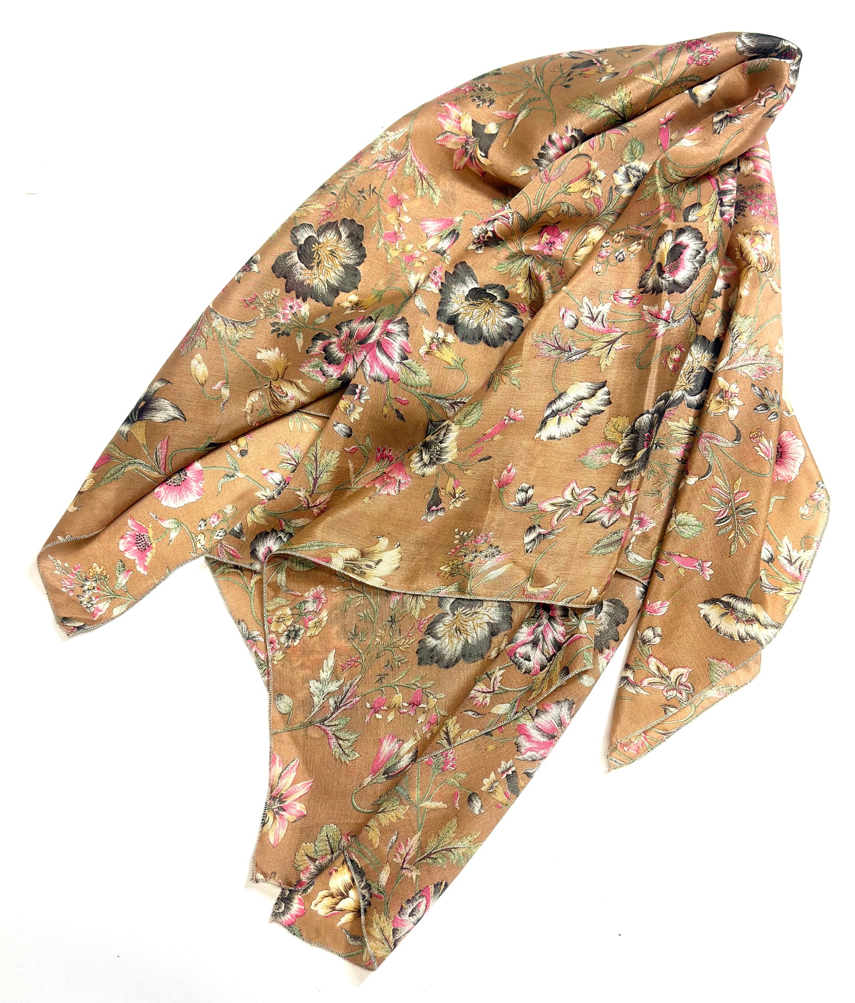 All scarfs are cut by hand so there could be just little variable in cms. Its 100% recycled silk sari. Imperfections are to be expected as these are upcycled made from used silk saris.