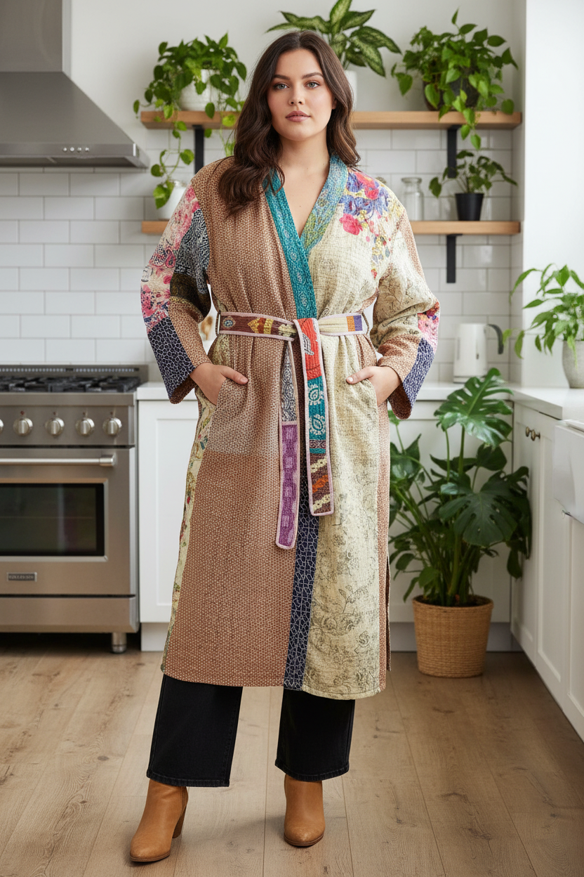 Our stunning handcrafted kantha kimono robes are made from 4-5 layers of fine vintage cotton saris.