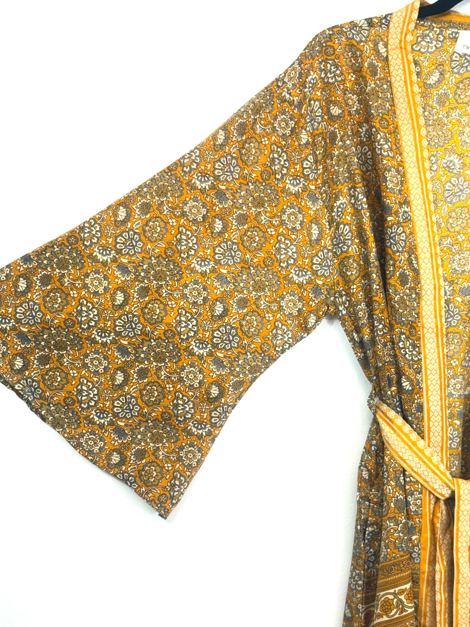 Vintage sari Luxurious kimono in beautiful colors. Its 130cm long and gives beautiful fall. Its made of recycled Indian saris. It surely feels like feather on your skin.