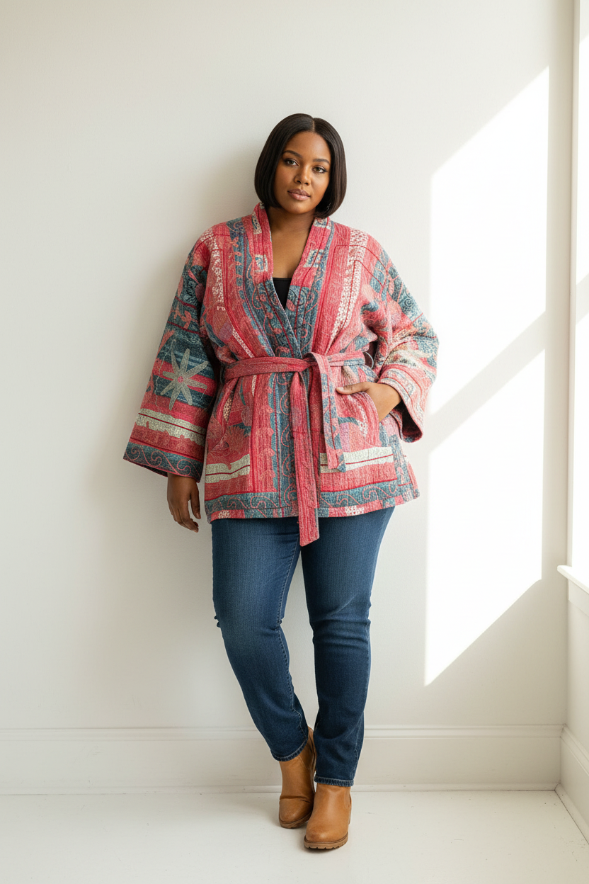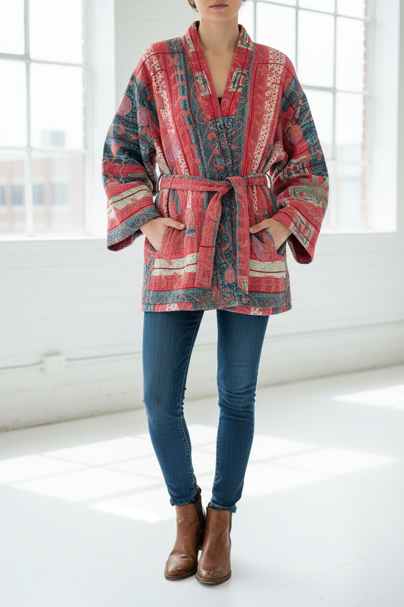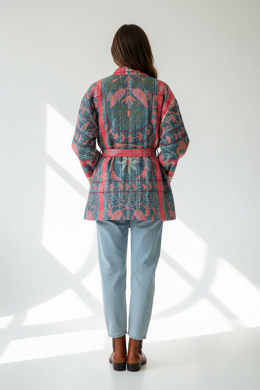 🌼 Reversible Kantha Suzani Coat– One-of-a-Kind Boho Kimono Coat 🌸