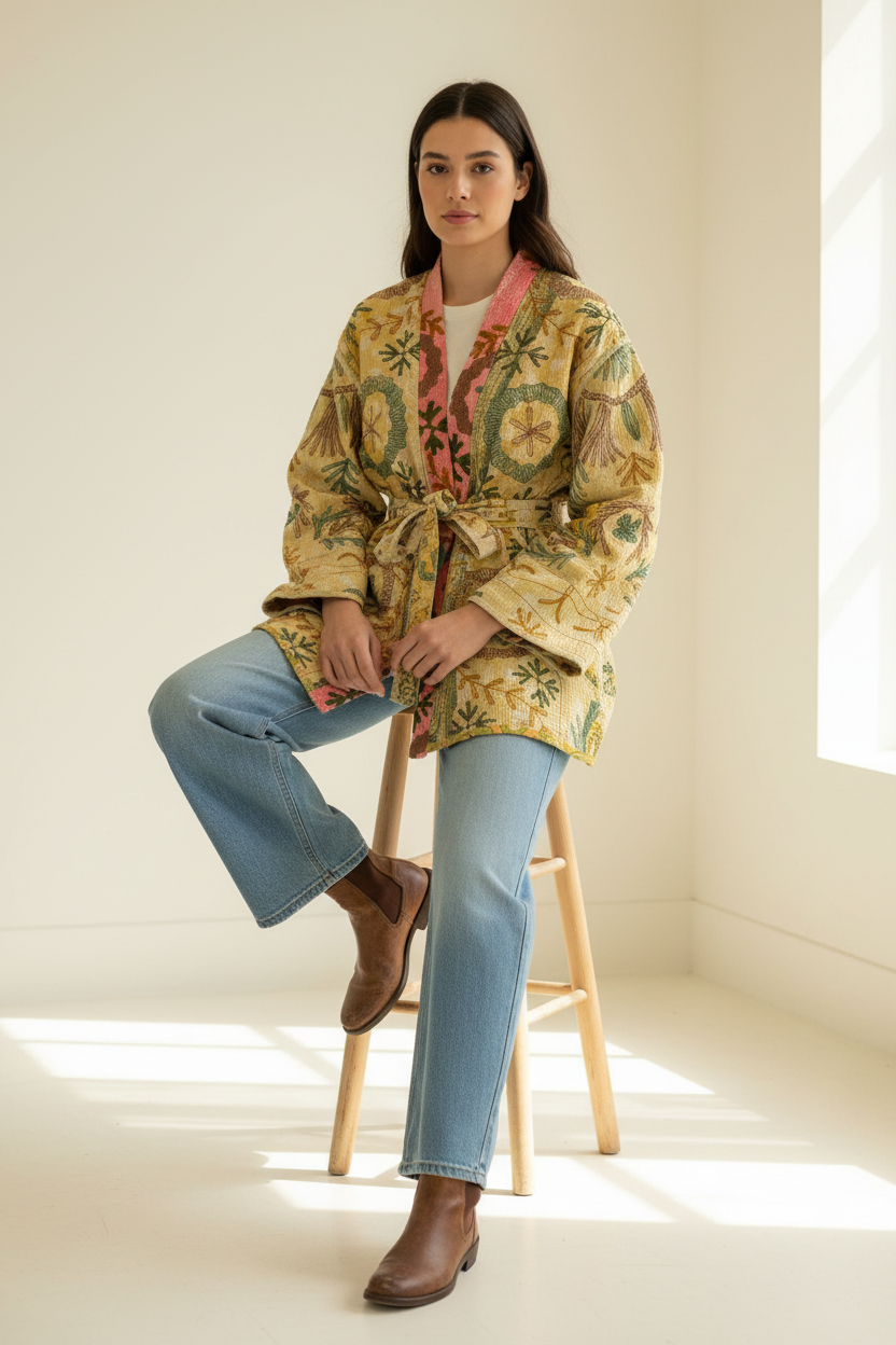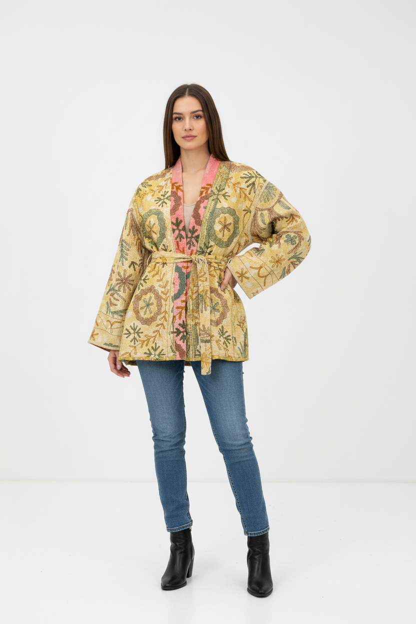 🌼 Reversible Kantha Suzani Coat– One-of-a-Kind Boho Kimono Coat 🌸